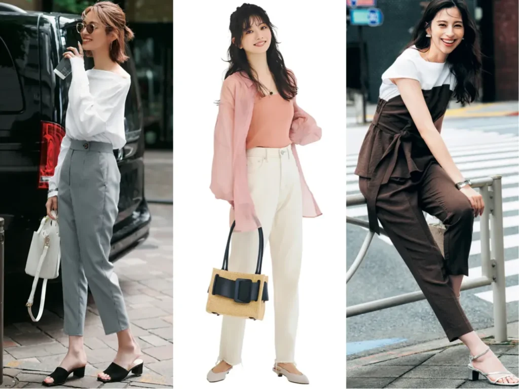 これらの理由から、ボトムスは伸縮性のあるスキニーデニムやテーパードパンツがおすすめです。